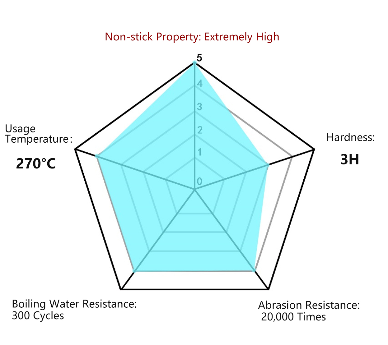 - High hardness, extremely strong abrasion resistance, and excellent non-stick properties.
